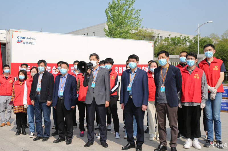 “安徽财经大学驰援上海财经大学抗疫物资,发车!” 4月18日上午9点,随着校党委书记、校长丁忠明一声号令,两辆悬挂着“众志成城 同心抗疫”“安财上财一家亲 抗击疫情心连心”标语的专用货车,满载着我校师生的深情厚谊,从龙湖东校区南门出发,火速驰援上海财经大学。
