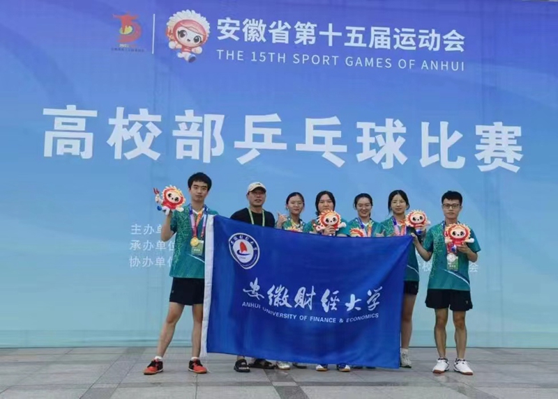 8月22日至29日,由安徽省人民政府主办、安徽省教育厅、安徽省体育局和滁州市人民政府承办的第十五届运动会高校部乒乓球比赛在安徽科技学院举行。我校乒乓球代表队发挥出色,蝉联女子双打金牌,同时获女子团体银牌、女子单打银牌、混双第六名。