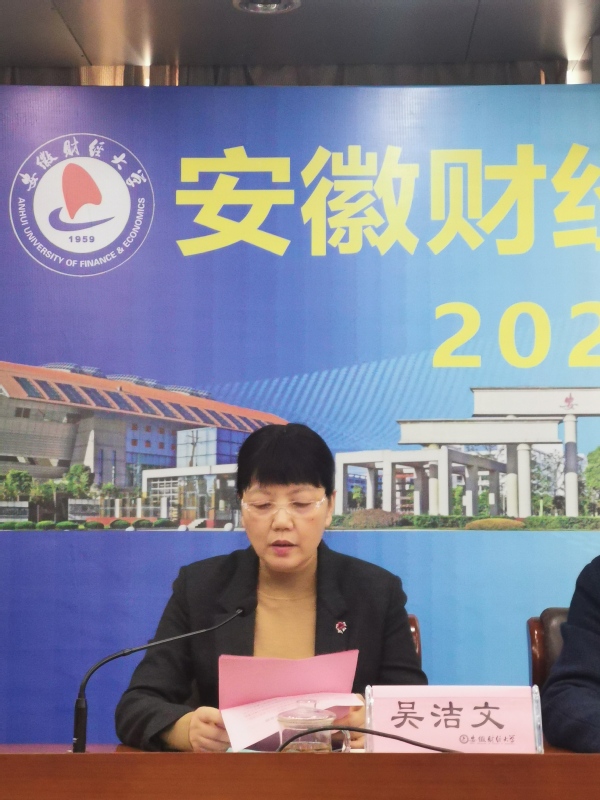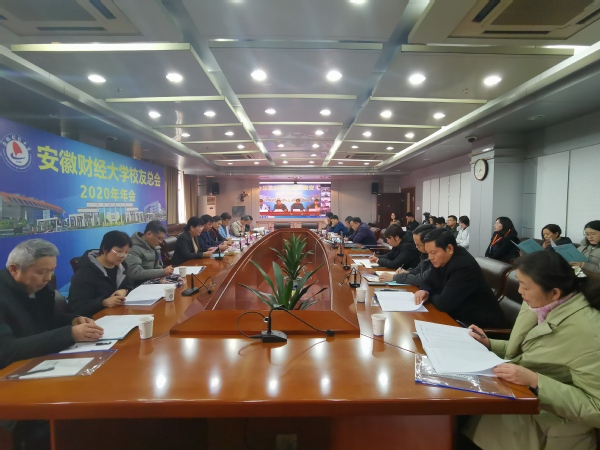 12月24日下午,安徽财经大学校友总会2020年年会在学校成功召开。受新冠肺炎疫情影响,会议采用现场+直播的方式进行。校党委书记、校长、校友总会会长丁忠明出席,党委常委、副校长程刚,安财教育基金会理事长潘淑娟,校友工作办公室主任、校友总会秘书长吴洁文以及学校部分职能部门负责人,学院校友工作负责人、联系人,全国各地近50余位校友代表一起携手合作,共谋母校新发展。会议由程刚主持。